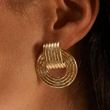 Candela 18k Gold Non-Tarnish Stripe Hoop Earring
